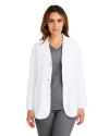 Esta bata minimalista, de longitud de consulta, cuenta con todas las características clásicas de una bata de laboratorio, desde las solapas con muescas hasta el corte entallado, además del tejido suave y elástico característico de Healing Hands.