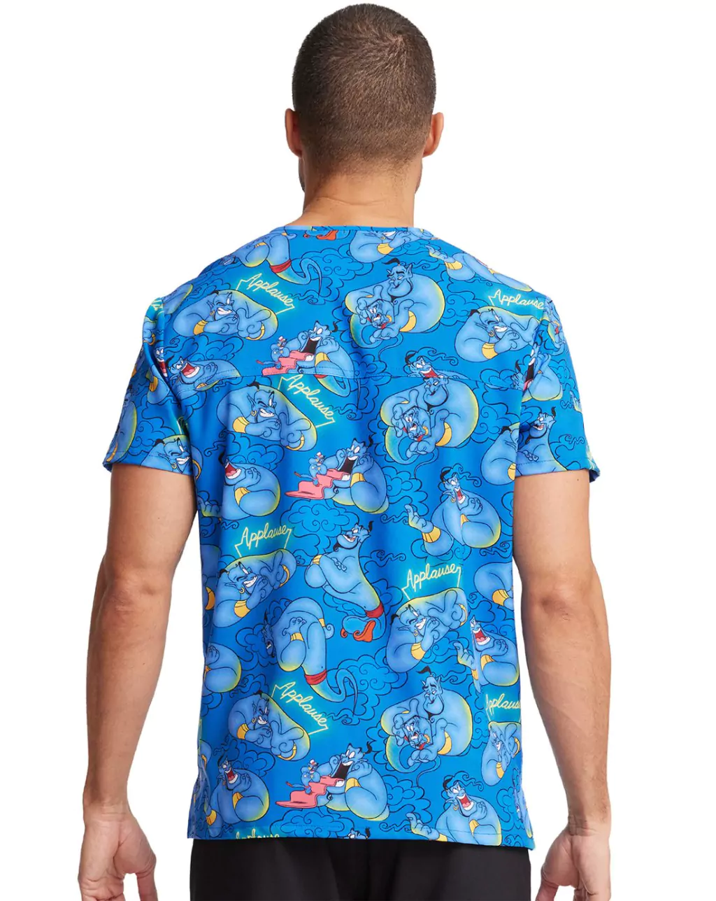 Esta filipina estampada con cuello en V y ajuste unisex cuenta con un bolsillo en el pecho, dos bolsillos de parche, un bolsillo para el teléfono celular y trabillas para instrumentos ocultas dentro del bolsillo izquierdo. Una costura en el canesú trasero y aberturas laterales completan el look