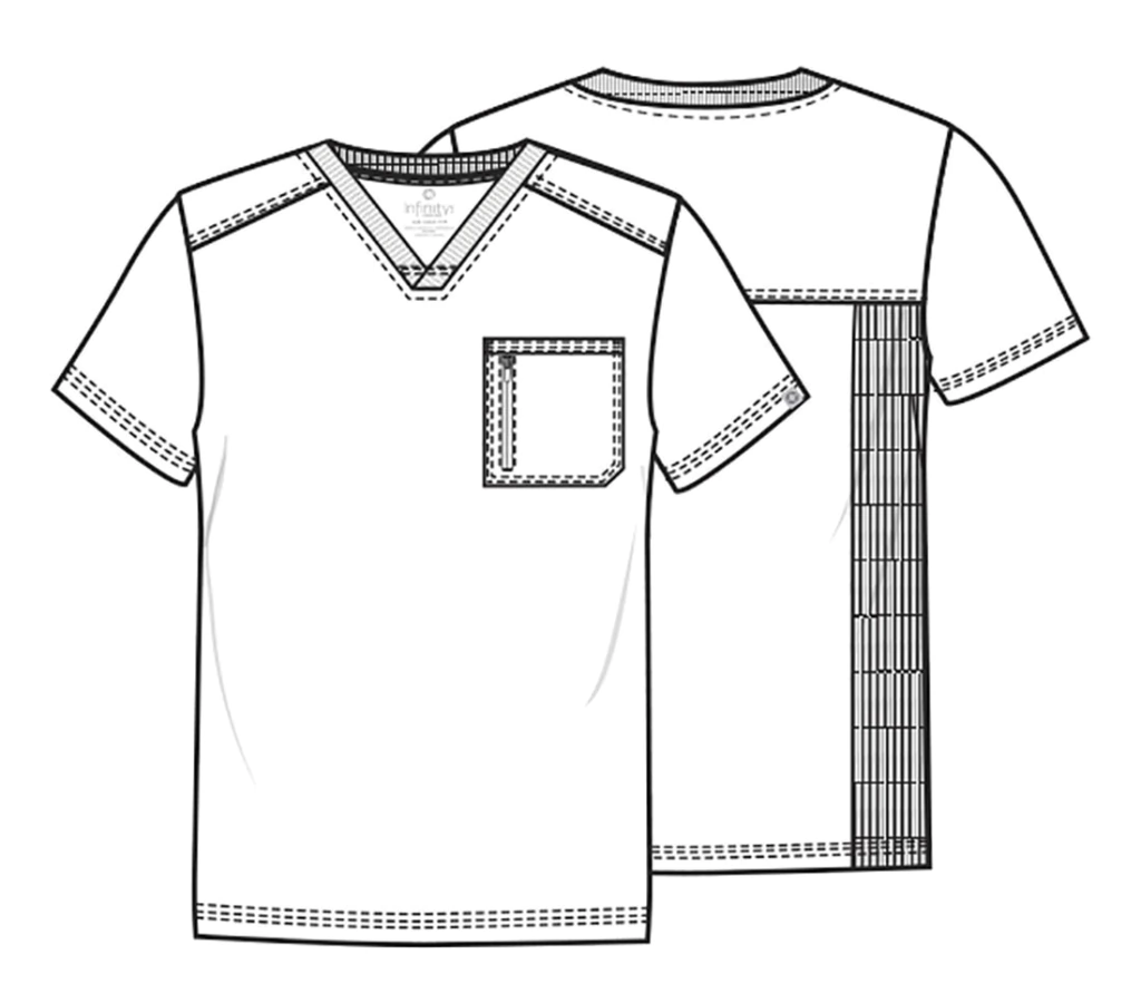 Este top con cuello en V presenta un dobladillo redondeado y un sutil toque de power mesh en la banda del cuello y el dobladillo de la manga. También tiene dos generosos bolsillos delanteros ribeteados, paneles de yugo delanteros en ángulo y costuras traseras para una forma favorecedora. Ajuste contemporáneo.