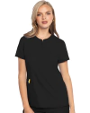 Filipina de cuello redondo con corte clásico moderno, tiene una cremallera parcial en la parte delantera, un lazo elástico para identificación en el lado izquierdo y costuras tipo princesa en la parte delantera y trasera. Cuenta con tres bolsillos: dos bolsillos delanteros y un bolsillo utilitario en el lado derecho, el dobladillo redondeado completa el look